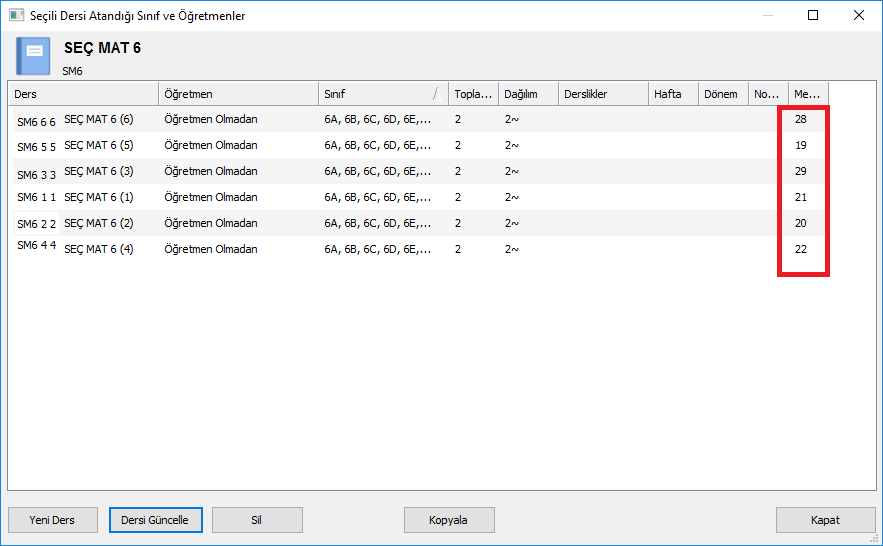 Bu kısımda grup öğrenci sayılarının ayarlanmasını inceleyeceğiz.