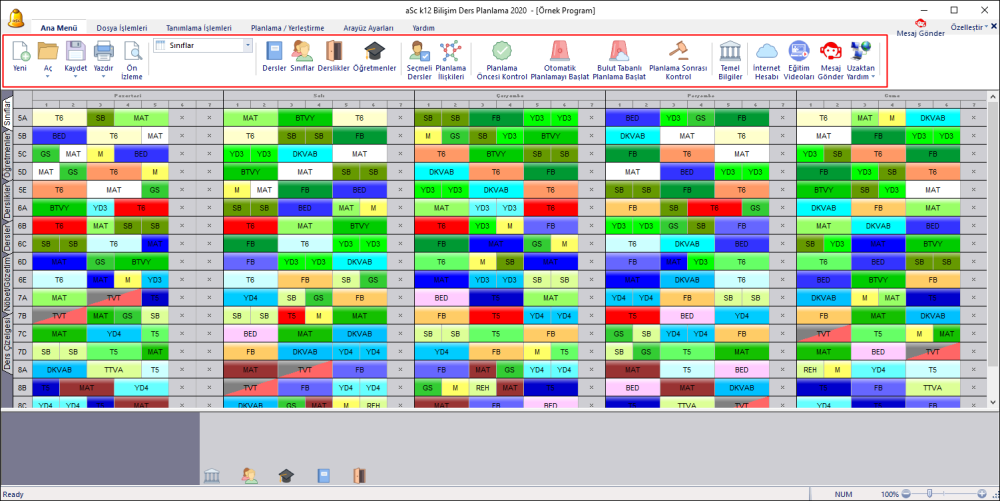 “Ana Menü” ders programı oluştururken en fazla kullanılan ve program oluşturmada ihtiyacınız olan bütün butonların yer aldığı menüdür.