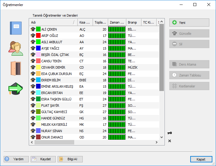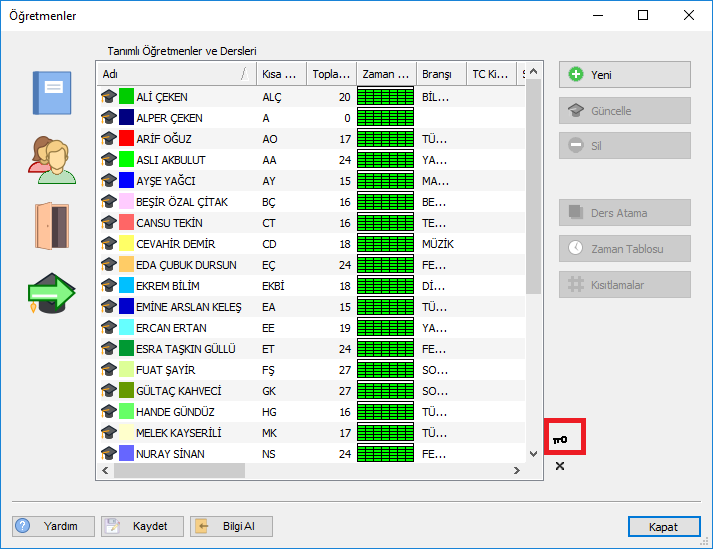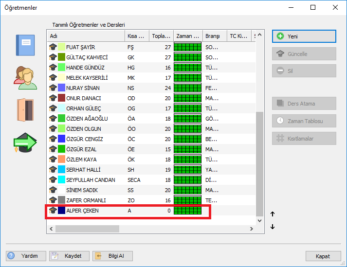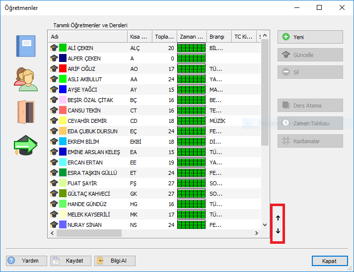 Ve tüm öğretmenlerin gösterildiği listelerde bu şekliyle sıralanmaktadır.