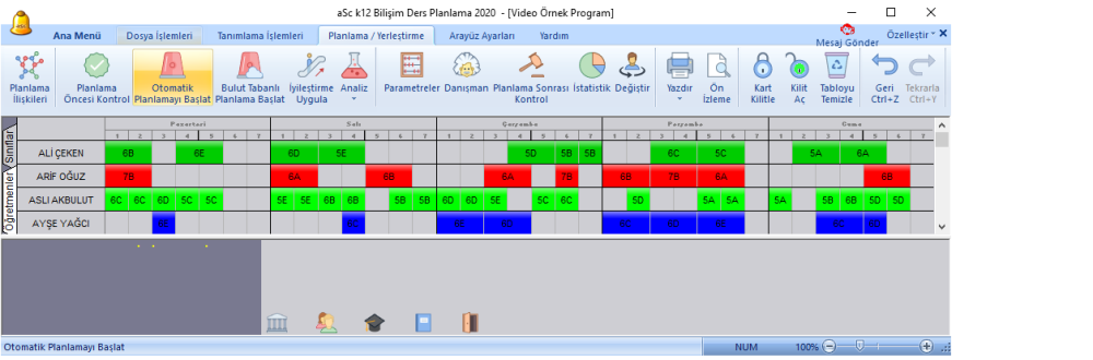 Artık planlama aşamasına geçebiliriz. Eğer planlama yapma konusunda kendinizi eksik hissettiğiniz konular varsa lütfen A.9) Ders Programı Oluşturma bölümünden yardım alınız.